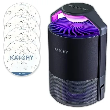 Show more If you're battling annoying fruit flies, gnats, and mosquitoes in your home, the Katchy Indoor Insect Trap is your ultimate solution! With its innovative design combining triple trapping power – UV light, a powerful fan, and sticky glue boards – this device efficiently traps those pesky intruders without the mess of traditional zappers. Unlike most traps that are bulky or unattractive, Katchy seamlessly fits in any decor, making it perfect for your kitchen, office, or entryway.