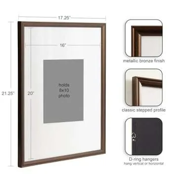 Kate and Laurel Adlynn Rectangle Picture Frame Set of 3, 16 x 20 matted to 8 x 10, Bronze, Vintage Three-Piece Frame Set for Gallery Wall Frame Set in Living Room Wall Decor