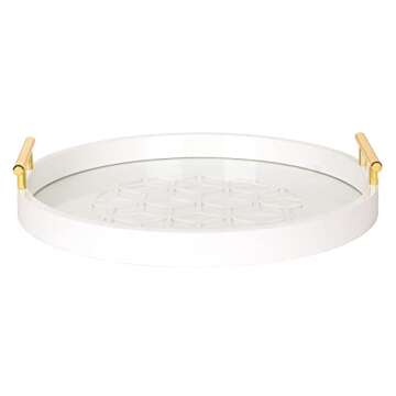 Kate and Laurel Caspen Round Cut Out Pattern Decorative Tray with Gold Metal Handles, White