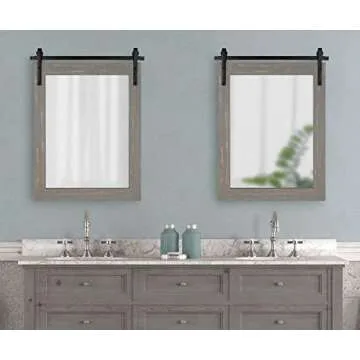 Kate and Laurel Cates Rustic Wall Mirror, 22" x 30" Rustic Gray, Farmhouse Barn Door-Inspired Wall Decor