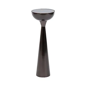 Show more Introducing the Kate and Laurel Chandon Modern Sophisticated Drink Table—a chic accessory that brings both functionality and elegance to your living space. Crafted with a meticulous eye for detail, this small yet striking table will be the showstopper in any room. It features a unique sculptural design that stands 23 inches tall with a compact 8-inch diameter top. The stunning gray gunmetal color and polished metallic finish not only elevate its aesthetic appeal but also reflect your sophisticated taste in modern decor.