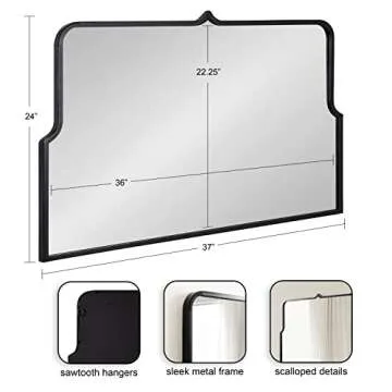 Show moreIntroducing the Kate and Laurel Gezella Wide Arch Mirror – an exquisite blend of elegance and functionality. With its unique Moroccan-inspired scalloped edges and stunning black iron frame, this mirror is more than just a reflection; it’s an impressive piece of decor that adds sophistication to any room. Measuring a generous 37 inches wide by 24 inches tall, it’s perfectly sized to become the centerpiece above your bathroom vanity, or enhance the decor in your bedroom, entryway, kitchen, or living room. The mirror's modern design is crafted to fit seamlessly into a variety of aesthetic styles, ensuring it elevates your home’s interiors without a fuss.