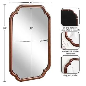 Show moreIntroducing the Kate and Laurel Glenby Traditional Scalloped Wall Mirror, your go-to accessory for enhancing any living space. This exquisite mirror combines functionality with elegance, featuring a unique scalloped rectangular shape that adds an air of sophistication to any room. Crafted from solid wood, each piece showcases a rounded and stepped frame, creating visual interest and depth. With dimensions of 24 inches wide by 36 inches high, this substantial mirror can reflect your style and taste while serving as a stunning centerpiece for your bathroom, hallway, or living room.