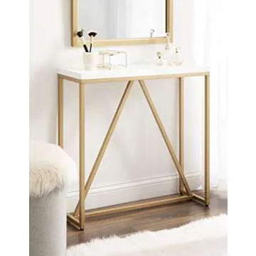 Kate and Laurel Kaya Modern Glam Console Table, 30 x 30 x 10, White and Painted Gold, Rectangle Two-Tone Entryway Table with Geometric Metal Base and Mixed Materials Design