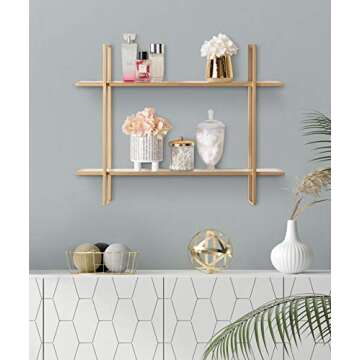 Kate and Laurel Leigh Wood and Metal Wall Shelf, 30" x 24", White and Gold, Unique Modern Glam Home Decor with Efficient Storage Shelves for Smaller Spaces