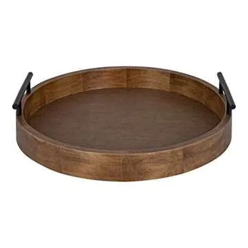 Kate and Laurel Lipton Modern Round Wood Tray, 15.5" Diameter, Rustic Brown with Black Handles, Decorative Accent Tray for Storage and Display