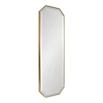Show more Step into the realm of elegance and modern sophistication with the Kate and Laurel Rhodes Modern Full Length Framed Octagon Wall Mirror. This stunning piece embodies contemporary design, boasting an eye-catching octagonal shape and a beautiful gold frame that seamlessly elevates any space. Measuring an impressive 16.75 inches wide by 48.75 inches high, it’s not just a mirror; it's a statement piece that beautifully enhances your home decor while serving its essential function. Crafted with premium quality materials, the Rhodes Wall Mirror features a large mirrored glass surface adorned with a beveled edge, which infinitely reflects light and creates an illusion of depth in your room.