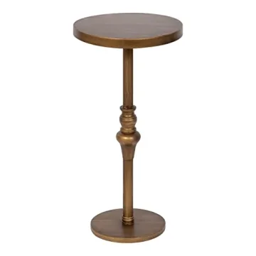 Show more Introducing the Kate and Laurel Stratton Rustic Pedestal Table, a stunning blend of elegance and practicality, designed to enhance your home decor with a touch of sophistication. This exquisite table showcases a vintage-inspired design that is as versatile as it is stylish, featuring a beautifully ornate metal frame that pairs perfectly with a round tabletop. Crafted from high-quality materials, the striking antique gold finish of the iron base adds a luxurious vibe to any room, making it a must-have centerpiece whether in your living room, bedroom, or even bath.
