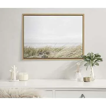 Kate and Laurel Sylvie East Beach Framed Canvas Wall Art by Amy Peterson Art Studio, 18x24 Natural, Chic Coastal Art for Wall