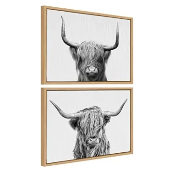 Simon Te's Highland Cow Canvas Art Set - 2 Piece 18x24 Framed Wall Decor