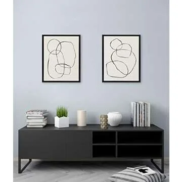 Kate and Laurel Sylvie Modern Circles and Going in Circles Framed Linen Textured Canvas Wall Art by Teju Reval, 2 Piece 18x24 Minimalist Abstract Black