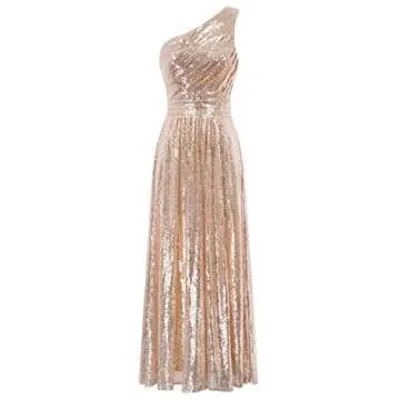 Kate Kasin Rose Gold Sequined Evening Formal Gown One Shoulder Dress Formal, US10