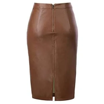 Kate Kasin Women Stretchy Business Faux Leather Skirt for Work and Beyond