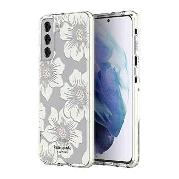 Show moreIntroducing the kate spade new york Defensive Hardshell Case, designed specifically for the Samsung Galaxy S21+ 5G. This chic and stylish case features a stunning Hollyhock Floral design with elegant stones that not only look fabulous but also protect your device. Crafted with precision, the case comes with a durable, shock-absorbing cushioned bumper that provides an essential layer of protection against drops and bumps, ensuring your phone stays safe without compromising on style.