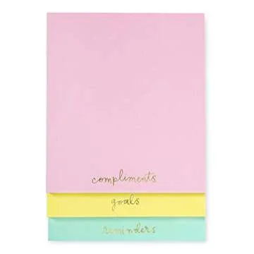 Show more Introducing the Kate Spade New York Stacked Notepad Set, where chic design meets practical functionality! This enchanting collection consists of three beautifully assorted notepads, each with 75 sheets of premium quality, colorful blank paper. Ideal for capturing everything from phone messages to task lists, these notepads make note-taking an elegant affair. Featuring inspiring quotes such as ‘compliments’, ‘goals’, and ‘reminders’ at the bottom of each sheet, they not only serve a purpose but also elevate your motivation as you jot down your thoughts. With a perfect blend of style and function, these notepads are crafted to inspire creativity while helping you stay organized in a fun, sophisticated manner.