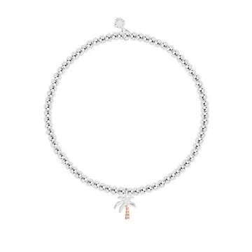 Katie Loxton A Little Beach Please Palm Tree Silver Women's Stretch Adjustable Charm Bangle Bracelet