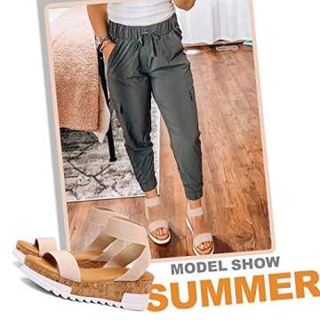 Show moreStep into comfort and style with the katliu Women's Wedge Platform Sandals. Designed for the modern woman, these sandals feature a unique 1-inch platform and a 2.5-inch cork wedge that perfectly contours to the natural curve of your foot. Not only does this design enhance your height, but it also ensures a comfortable walking experience without any discomfort. The stylish nude color makes them incredibly versatile, allowing you to pair them effortlessly with any outfit in your spring and summer wardrobe.