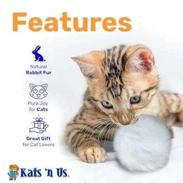 Enhance every play session with our Kats'N Us rabbit fur toys, which provide a tender touch akin to real prey, ensuring a captivating play experience. Forget ordinary toys; these charming pom poms are sure to become your cat’s new favorite, keeping them exercised, entertained, and happy.
