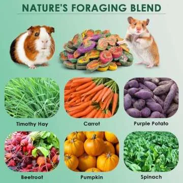 Show moreIntroducing the KATUMO Rabbit Chew Toys—the ultimate fusion of nutrition and enjoyment for small animals! Tailored for rabbits, guinea pigs, hamsters, chinchillas, gerbils, and other rodents, these delectable chew toys are not just treats; they are health-packed snacks designed to promote healthy teeth and digestion. Crafted from natural ingredients, including carrot, timothy grass, purple potato, pumpkin, beetroot, and spinach, each piece offers a unique blend of flavors and textures. Baked at high temperatures, these treats are available in fun shapes and varying hardness, encouraging your pet to grind and nibble delightfully.