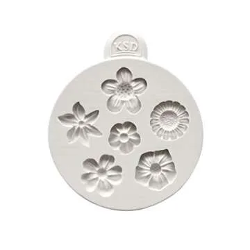 Show more Introducing the Katy Sue Flowers Silicone Mold, your new best friend for elevating cake and craft projects with stunning floral designs! This remarkable mold, designed by the renowned Katy Sue Designs, allows you to create six exquisite flowers in various sizes: a large flower (0.98 x 0.98 x 0.2 inches), a medium flower (0.87 x 0.87 x 0.16 inches), and a small flower (0.75 x 0.67 x 0.2 inches). Perfectly sized for cake decorating, cookie embellishment, or crafting, each flower is designed to impress with intricate details that will delight anyone who sees your creations. Made in the UK, this mold is crafted from FDA-compliant and food-grade silicone, ensuring safety and durability in every use.