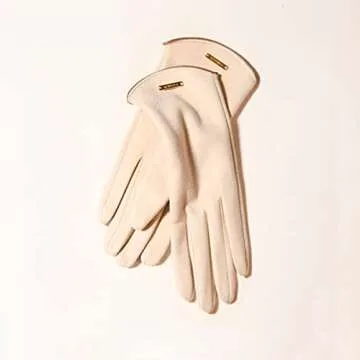 Kaupuar Suede Aesthetic Winter Gloves - Slim Cut Suede Lined Thermal Warm Gloves - for Women Adults Teen Girls (Cream)