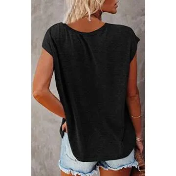 Kaupun Women's V Neck Tank Top Cap Sleeve Summer Shirt, Black, Large