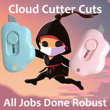 Show more Transform mundane tasks into delightful adventures with our Kawaii Box Cutter set featuring two charming designs: pink and blue. Each cloud-shaped cutter is not just a functional tool, but a sprinkle of magic that makes package opening enjoyable. Whether you're unboxing a long-awaited delivery or crafting a masterpiece, this mini cute pocket knife ensures that your experience is both efficient and whimsical. Kawaii lovers will appreciate its playful design, and you’ll never look at a box cutter the same way again!