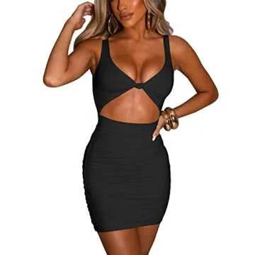 Kaximil Women's Sexy Bodycon Sleeveless Cut Out Ruched Tank Mini Club Party Dresses