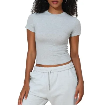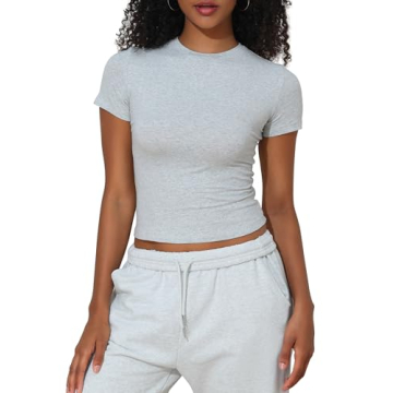kayamiya Women's Crew Neck Cotton T Shirts Going Out Trendy Tight Baby Tee Crop Tops Grey M