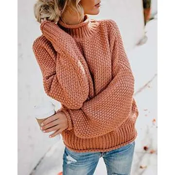 kayamiya Women's Turtleneck Sweaters Oversized Chunky Knit Slouchy Warm Knitwear Pullover Tops S Brick Red
