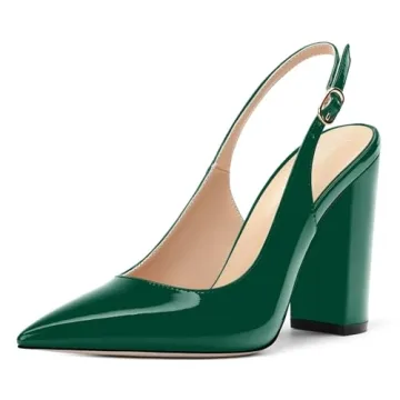 Show moreStep into elegance with the Kayarevna Women's Pointed Toe Slingback Heels. Perfectly designed to combine style and comfort, these stunning dark-green patent heels boast an ultra-soft lining and cushioned footbed for all-day wear. With a chunky 3.9-inch heel, they provide not just a flattering height boost but also the stability and support needed for long hours on your feet. Whether you’re walking down the aisle or heading out for an evening with friends, the Kayarevna heels are your go-to choice for sophistication and style.