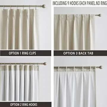 Crafted with meticulous attention to detail, the panel showcases 7 sewn-in double pleats at the top, offering a sophisticated look that can refresh and brighten any room—be it your cozy living room, bedroom, office, or business space. Installation is a breeze with multiple hanging options, including back tab, ring hooks, and clip rings, allowing you to customize the drape's style according to your preference.