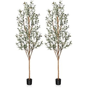 Show moreTransform your space with the Kazeila Artificial Olive Tree, a stunning 7FT tall faux silk plant that will elevate your home or office decor with a touch of effortless elegance. Crafted to perfection, this tree showcases a lifelike appearance complete with vibrant green leaves and adorable faux olives, all atop a natural wood trunk for a truly authentic look. No more worries about maintenance or upkeep—the Kazeila tree brings the beauty of nature indoors while requiring none of the hassle associated with live plants.