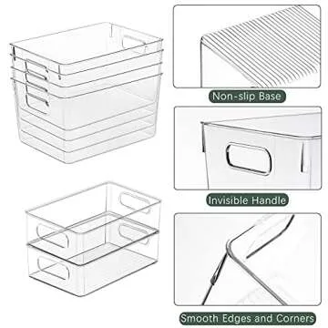 KAZIPA 4 Pack Kitchen Organizers - Clear Plastic Storage Bins for Fridge, Pantry, Cabinet, Countertops and Bathroom