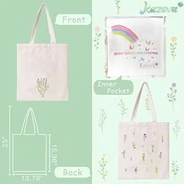 Kazova Floral Cotton Canvas Tote Bag Aesthetic Flower Tote Bag Minimalist Bouquet Reusable Tote Bag With Handles Canvas Shopping Bag Botanical Wildflower Canvas Bag