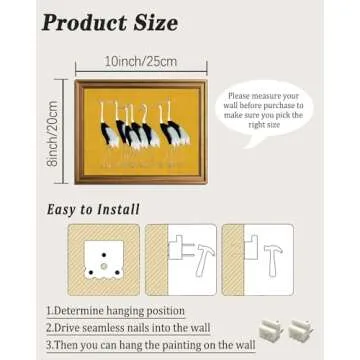 KBKBART Gold Framed Canvas Wall Art, Vintage Japanese Crane Poster with Seven Cranes Bird illustration Wall Art Prints Japanese Decor for Bedroom, Retro Asian Bird Art, Vintage Home Decor(8"x10")