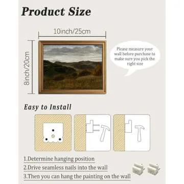 KBKBART Gold Framed Vintage Landscape Wall Art Home Decor, Retro Mountain Vintage Painting Prints, Moody Countryside Farmhouse Landscape Wall Decor, Canvas Wall Art for Living Room Decor Bedroom Home Bathroom Wall Decor(8"x10")