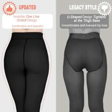 Show more Fall in love with our innovative fleece-lined tights, featuring an upgraded One-Line Crotch Design that enhances your natural curves while offering unparalleled comfort. Made from a blend of 45% spandex, 25% polyester, and 30% fleece, these tights embrace your body gently and create a stunning silhouette without compromising warmth. The new design eliminates the visual faux pas of a U-shaped seam, opting instead for a more refined look that lifts and shapes your figure beautifully.