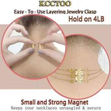 Show moreDiscover the joy of effortlessly layered jewelry with the Kcctoo Necklace Clasps and Closures, an innovative solution designed to simplify your accessorizing experience. Whether you prefer a single statement piece or an elegant layer of necklaces, these magnetic clasps transform the conventional jewelry routine. Crafted with strong magnets and available in luxurious 14k gold and silver plated finishes, these connectors not only enhance your style but also ensure your precious jewelry stays securely in place.