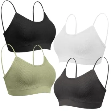KCDDUMK 4 Pieces Cami Bras - Women's V-Neck Padded Seamless Straps Bralette Everyday Basic Sleeping Bra