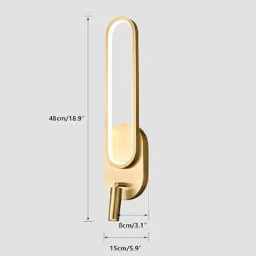 KCO Brass Gold LED Wall Light Indoor Modern LED Wall Sconce Mid Century Vintage Bathroom Vanity Light Fixture Hallway Long Sconces Wall Light Wireless Wall Sconce
