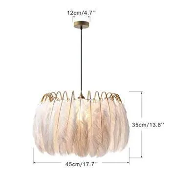 Show more Illuminate your space with a touch of elegance and whimsy through the Modern Chandelier with Feather Shade. Standing at a height of 17.7-inches with a diameter of 13.8-inches, this exquisite light fixture is designed to add a unique charm to any room, whether it's your bedroom, dining area, or even a playful nursery. The adjustable cord length, capable of reaching up to 39.4-inches, allows for flexibility in installation, ensuring that you can find the perfect height to match your decor. Crafted with a Mid-Century design, this chandelier is an ideal choice for both traditional and modern interiors, effortlessly bridging the gap between the two styles.