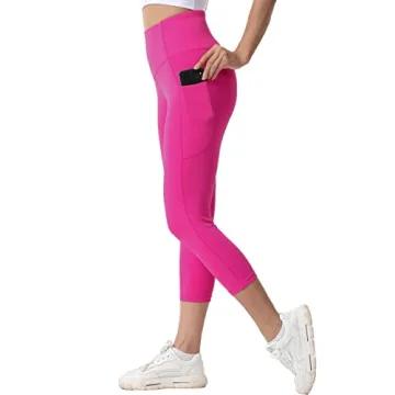 Kcutteyg High Waisted Yoga Pants for Women with Pockets - Capri Hot Pink, X-Small