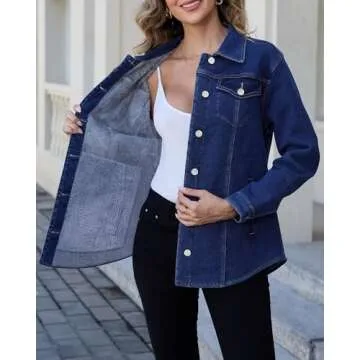 KDF Jean Jacket Women Fleece Lined Denim Jacket for Women Oversized Blue Jean Jackets for Womens Sherpa Jacket Women Size Small