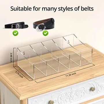 KDSKSC Belt Organizer, Acrylic Belt Storage Holder for The Closet and Drawer, 5 Compartments Belt Container Clear Display Case for Tie and Bow Tie