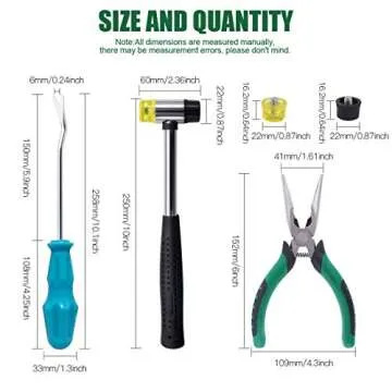 Show more Introducing the ultimate toolkit for any DIY enthusiast! This comprehensive set includes a tack puller, a rubber mallet featuring two replacement heads, and a needle nose plier. Whether you're tackling furniture upholstery, engaging in artful DIY craft decoration, or undertaking various repair projects, this toolkit has everything you need to make your tasks easier and more efficient.