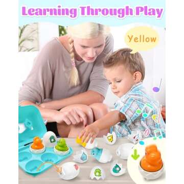 Show moreIntroduce your little ones to the captivating world of colors and shapes with the Kecristv Easter Egg for Toddlers, a delightful educational toy designed specifically for children aged 1 to 3 years old. This Montessori-inspired package includes 6 beautifully colored matching eggs, each corresponding to a unique dinosaur that makes a chirping sound when pressed. The vibrant colors—red, blue, orange, green, and yellow—encourage your children to identify and match, stimulating their sensory development and enhancing their cognitive skills. These thoughtfully designed eggs not only engage your child's senses but also support their motor skills and problem-solving abilities, creating a perfect blend of fun and learning.