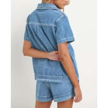 Kedera Summer Denim Set for Women 2 piece Casual Short Sleeve Boxy Shirt Tops and Shorts Pants Lounge Sets Outfits