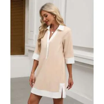 Show moreIntroducing our exquisite Champagne Collier Dress—a perfect blend of style and comfort crafted from soft, breathable cotton linen. This classic shirt dress features a basic v neck collar, short sleeves, and a button-down closure, making it a versatile addition to any wardrobe. With its simple yet generous loose fit, this dress effortlessly transitions from casual outings to more polished events, offering a chic silhouette that flatters all body types.