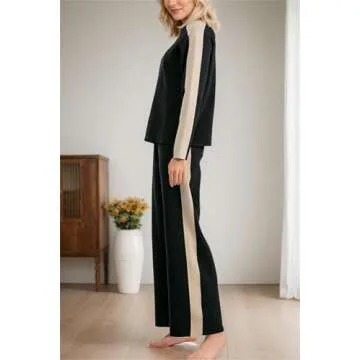 Kedera Women Knit 2 Piece Loungewear Sets Knit Sweater Outfit Long Sleeve Contrast Color Pullover Tops and Wide Leg Pants